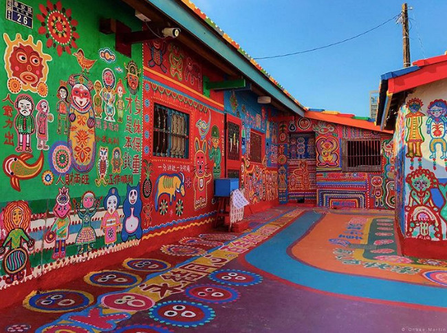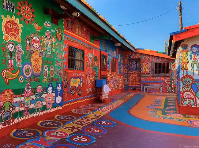 Ngôi làng ở Đài Loan này không phải lúc nào cũng “mát mẻ”. Ông Huang Yin-Fu, 86 tuổi, nghĩ rằng đường phố nơi ông sống không đủ sáng. Vì vậy, ông vẽ lên các bức tường và các con đường trong làng bằng cảm hứng từ truyền thống Đài Loan.