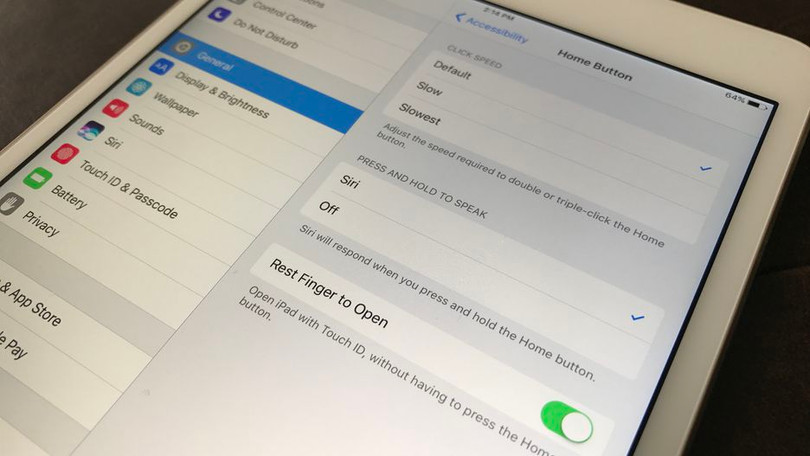 Với phiên bản iOS 10 trở lên. Ngoài việc bạn có thể ấn nút Home để mở iPad, bạn chỉ cần để tay nhẹ lên nút Home mà không cần dùng lực ấn. Vào mục Settings > General > Accessibility > Home Button để bật chức năng này.