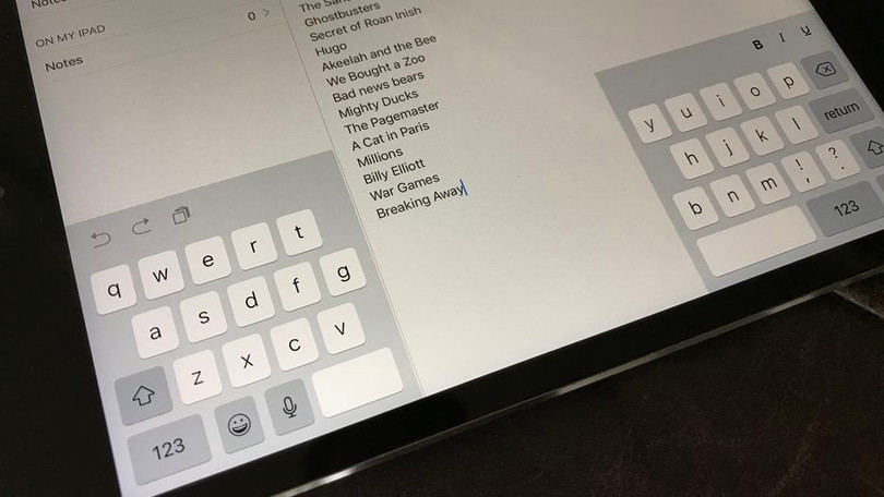 Thay vì phải kéo giãn ngón cái ra khi cần gõ những chữ cái ở góc giữa bàn phím khi sử dụng iPad, bạn có thể đặt 2 ngón của mình vào giữa bàn phím và kéo ra 2 phía bên ngoài để tách bàn phím thành 2 phần và lúc này bạn gõ dễ dàng hơn nhiều.