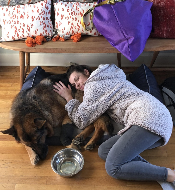 “Tôi thấy chú chó 12 tuổi của tôi trên giường. Đã vài năm kể từ khi nó mới biết trèo lên đây và không biết vì sao nó làm được.”