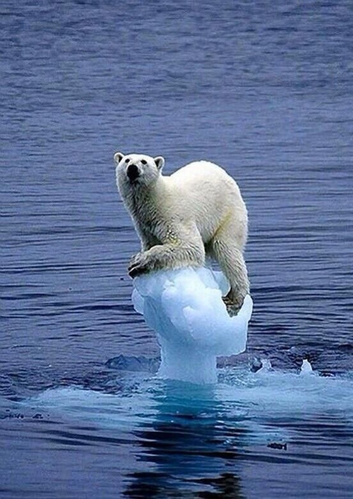 Đây là một con gấu Bắc đang cố bấu víu vào tảng băng cuối cùng. Nó sống ở vùng Bắc Cực và, giống như những con gấu Bắc cực khác, nó cũng phải đối mặt với cuộc khủng hoảng băng do những thay đổi về nhiệt độ do mức phát thải CO2 và ô nhiễm gia tăng. Biển băng là nhà để chúng tồn tại, tìm kiếm thức ăn, ngủ đông và sinh sản. Nhiệt độ nóng lên toàn cầu đã ảnh hưởng đến gần 19 vùng của Bắc Cực.