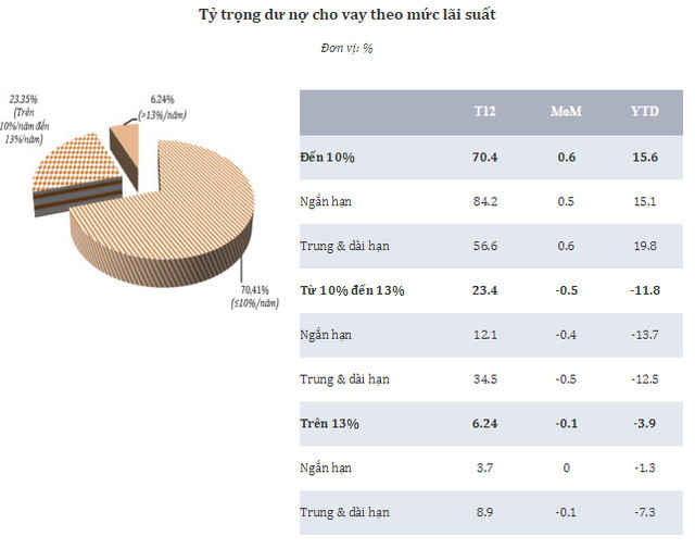 Tỷ trọng các khoản cho vay có lãi suất trên 13%/năm tiếp tục giảm