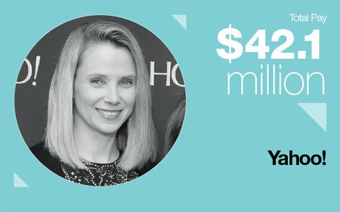 Bà Marissa Mayer của hãng Yahoo là nữ giám đốc điều hành duy nhất có tên trong bảng xếp hạng, với tổng thu nhập 42,1 triệu USD, tăng thêm 69% so với năm trước.