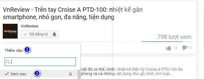 Nếu chưa thể xem video ngay, bạn có thể lưu nó để xem lại sau. Thực hiện bằng cách nhấn nút Add to (Thêm vào) nằm bên cạnh nút Share (Chia sẻ) bên dưới video, sau đó chọn hộp kiểm Watch Later (Xem sau).
