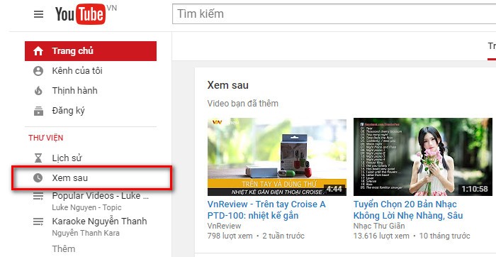 Bạn có thể xem lại các video đã lưu bằng cách nhấn nút Watch Later (Xem sau) từ thanh trình đơn bên trái của màn hình.