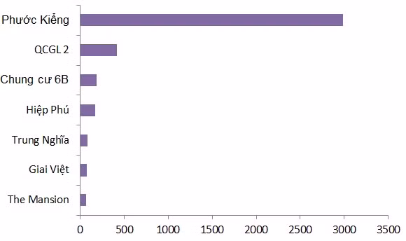 Chi phí xây dựng dở dang tại dự án Phước Kiểng đang là gánh nặng tồn kho của QCG. Đơn vị tính: tỷ đồng (31/12/2014)
