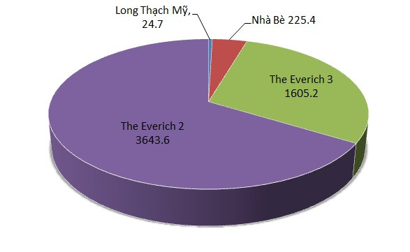 Phần lớn tồn kho của KBC là chi phí dở dang tại các khu công nghiệp (tính đến 31/12/2014. Đơn vị: tỷ đồng