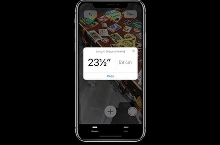 5.Một ứng dụng iOS 12 mới được gọi là Measure cho phép người dùng đo khoảng cách và chiều dài của vật bằng cách sử dụng tính năng thực tế ảo. Chỉ cần hướng camera đến vật mà bạn muốn đo, sau đó chạm và vẽ một đường bằng ngón tay mình để thực hiện thao tác đo. Ứng dụng Measure này sẽ tự động đo kích thước của hình ảnh.