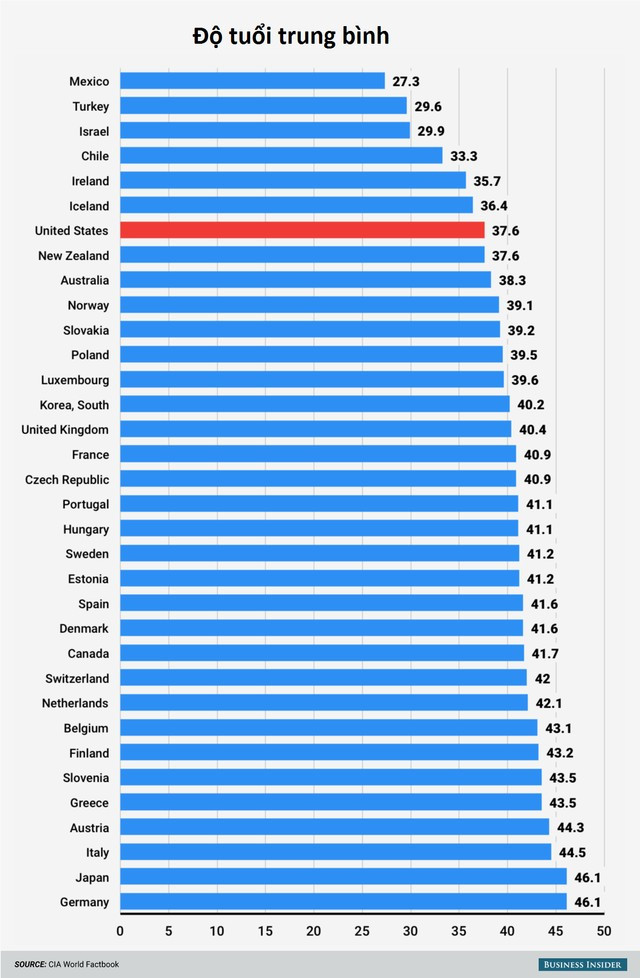 Trong khi tỷ lệ sinh nở ngày càng giảm ở các quốc gia khác thì dân số Mỹ trẻ hơn hầu hết các quốc gia OECD, Mỹ có một cái nhìn về nhân khẩu học tốt hơn hầu hết các nước phát triển trên thế giới