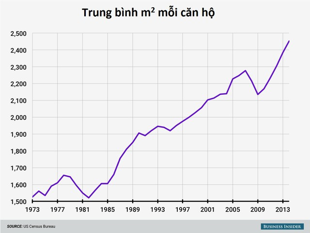 Người Mỹ thích những ngôi nhà rộng lớn và họ đang xây dựng những căn hộ có diện tích ngày càng tăng