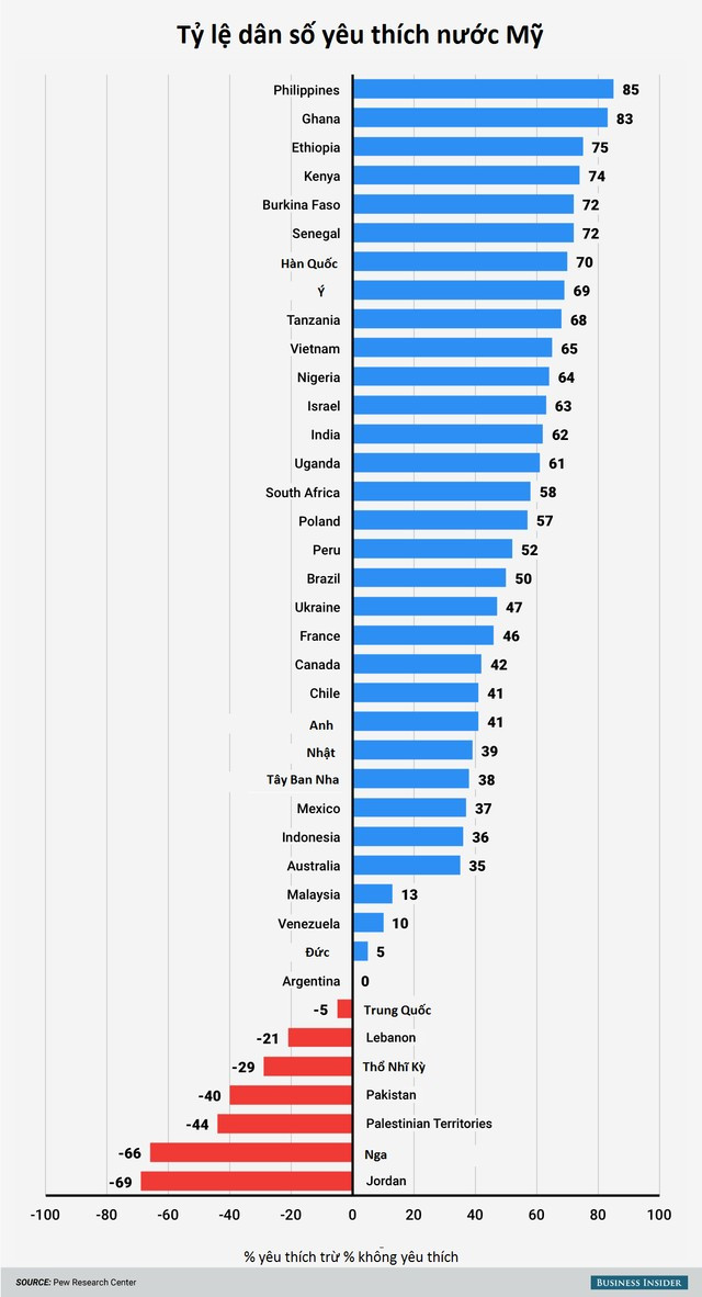 Hầu hết các quốc gia đều ưa thích nước Mỹ, tất nhiên có một số trường hợp ngoại lệ