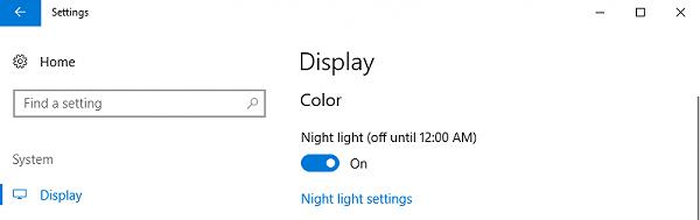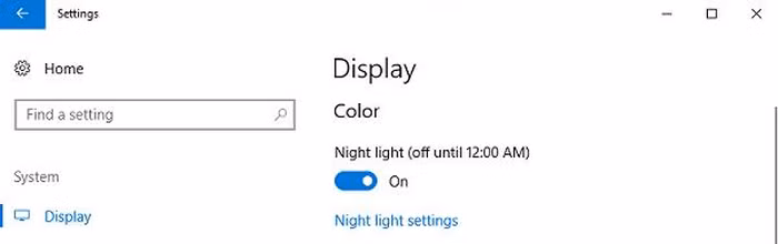 Tính năng Night Light sẽ điều chỉnh màn hiển thị sang các màu ấm hơn, giúp bạn ngủ ngon hơn sau khi làm việc với máy tính. Để kích hoạt, bạn hãy bấm vào menu Start, chọn Settings > Display. Tại mục Night Light, người dùng chỉ cần chuyển sang mục On.