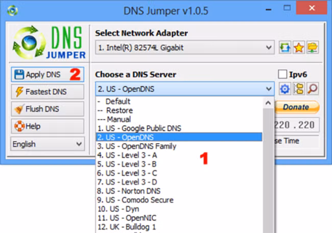 Khi hoàn tất, người dùng hãy đánh dấu vào ô Custom DNS Server, sau đó nhập vào dãy DNS 165.21.83.88 và 165.21.100.88 vào hai ô tương ứng, cuối cùng nhấn Apply DNS để lưu lại.
