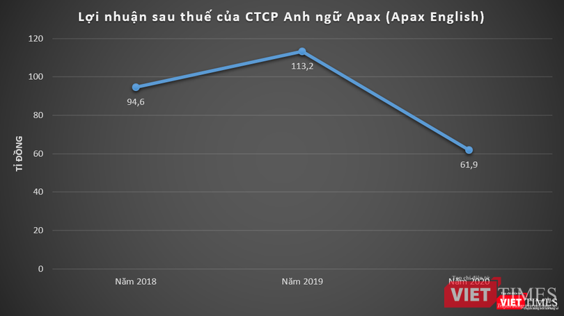 Năm 2020, Apax English ghi nhận lợi nhuận sau thuế đạt 61,9 tỉ đồng, giảm 45% so với năm 2019.