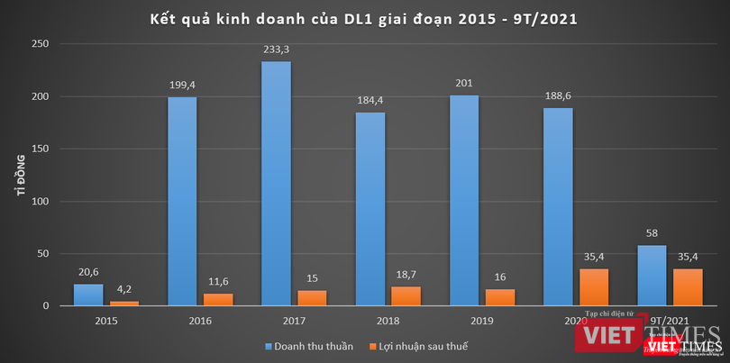 Lũy kế 9 tháng đầu năm 2021, DL1 ghi nhận doanh thu thuần đạt 58 tỉ đồng, giảm 38,5% so với cùng kỳ năm trước. Lợi nhuận sau thuế lũy kế đạt 35,4 tỉ đồng, tăng 57,6% so với cùng kỳ năm 2020.