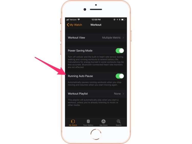 Bật ứng dụng bằng cách vào Workout> Running Auto Pause.