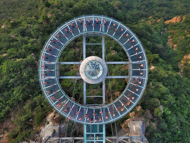 8. Mọi người đứng tụ tập trên cầu treo ở vách núi ngắm cảnh trong Công viên Rừng Quốc gia Trương Gia Giới - đây cũng là một cảnh quay xuất hiện trong bộ phim Avatar.