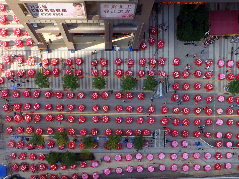 14. Người dân bày cỗ ăn mừng để trở lại nhà sau khi tòa nhà của họ được phá dỡ và xây mới lại tại Quảng Châu, tỉnh Quảng Đông.