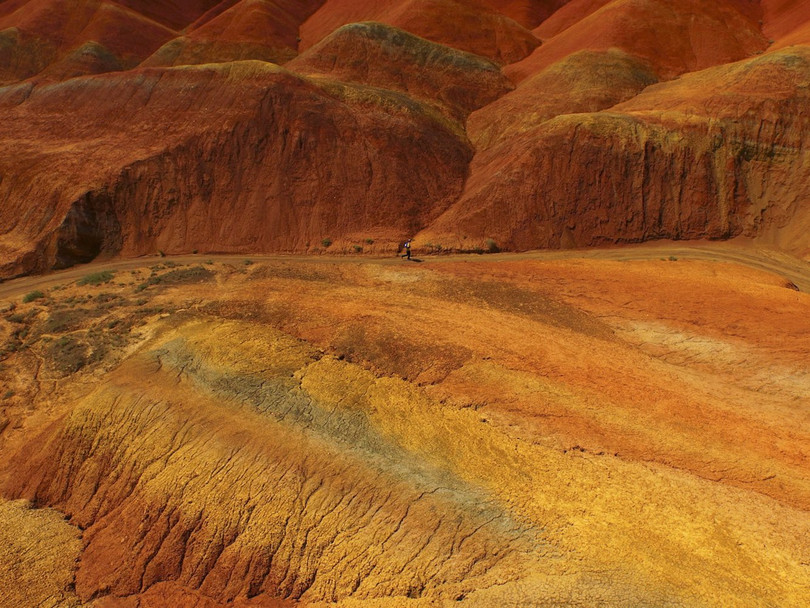 20. Dù là công viên nhưng không hề thích hợp cho đi bộ. Trong ảnh là một người đang chạy bộ trên đường mòn trong Công viên địa chất quốc gia Đan Hà, ở Trương Dịch, tỉnh Cam Túc. Công viên này đặc biệt vì có đá nhiều màu sắc.