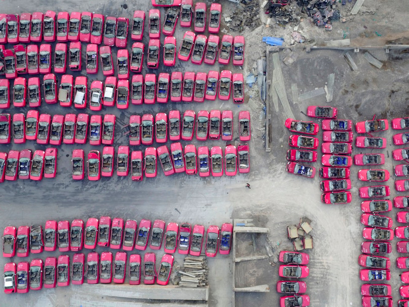 17. Những chiếc taxi bị bỏ tại Thái Nguyên, tỉnh Sơn Tây, vì thành phố này đang chuyển sang taxi điện.
