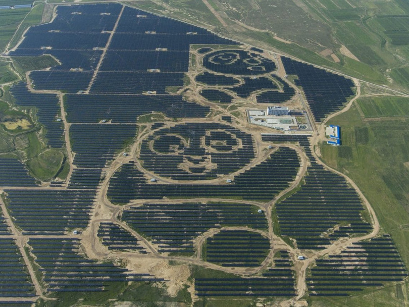 4. Nhà máy năng lượng mặt trời hình gấu trúc ở Đại Đồng, Trung Quốc, được nhìn từ trên cao.