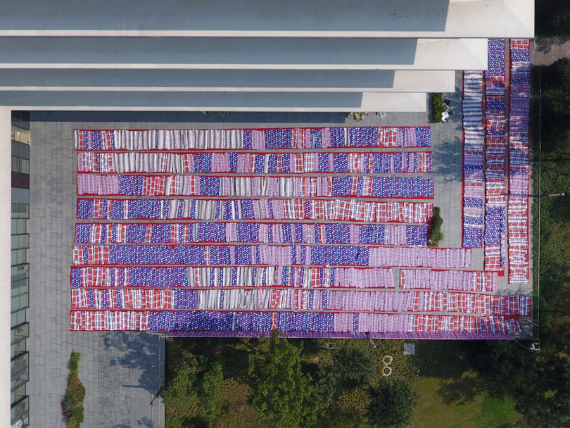 11. Chăn cho nhân viên của Alibaba Group được sấy khô trong một sân để chuẩn bị cho ngày mua sắm vào Lễ độc thân 11/11, tại Hàng Châu, tỉnh Chiết Giang.
