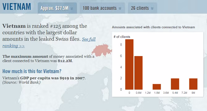 26 khách hàng liên quan đến Việt Nam có tài khoảng 37,5 triệu USD.