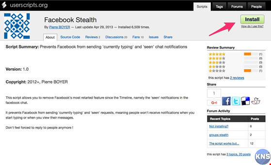 - Bước 1: Đầu tiên, bạn phải mở trình duyệt Firefox trên máy tính và cài đặt tiện ích Facebook Stealth tại địa chỉ https://goo.gl/KD6z24, nhấn Install ở góc trên bên phải.