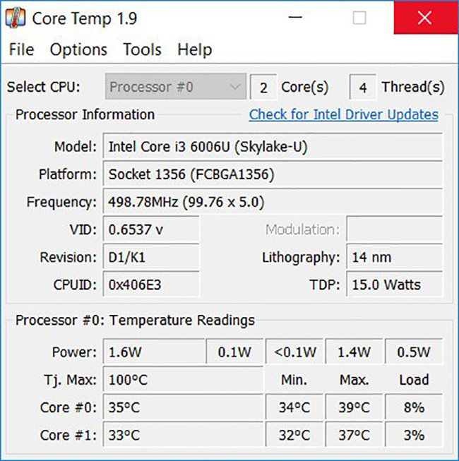 Core Temp (https://goo.gl/IRdp) có giao diện đơn giản, cung cấp nhanh các thông tin về nhiệt độ, xung nhịp CPU và một số thông tin liên quan. Trong quá trình cài đặt, người dùng nên thực hiện từng bước và bỏ chọn các ứng dụng “khuyến mãi” không cần thiết.