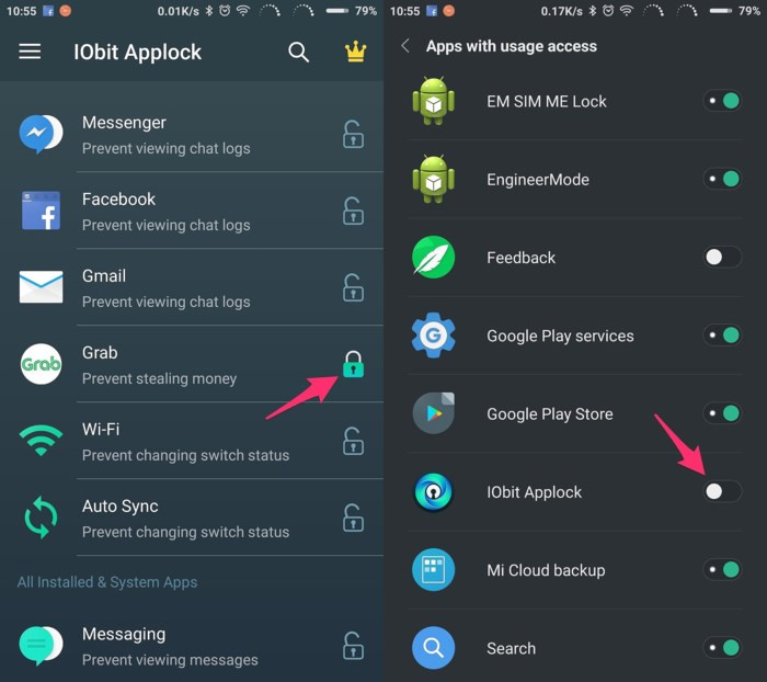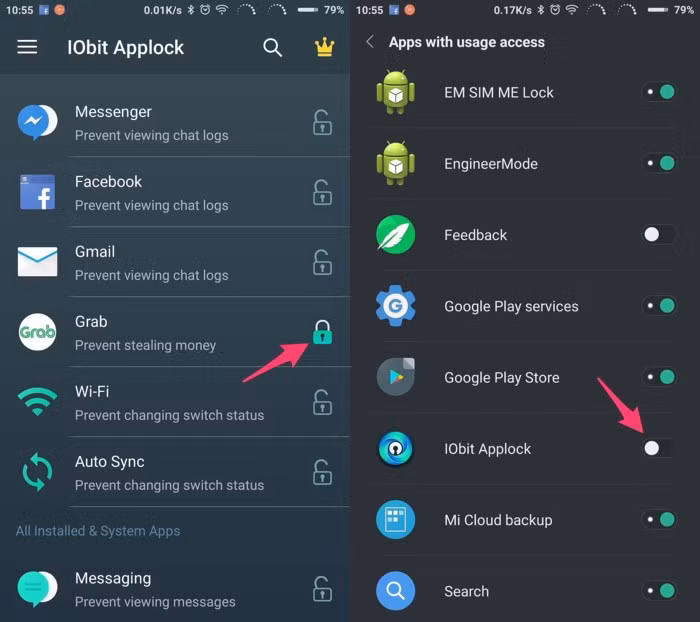 Để bảo vệ các ứng dụng quan trọng như email, tin nhắn, Facebook… bạn chỉ cần chạm vào biểu tượng ổ khóa ở ngay bên cạnh và làm theo các bước hướng dẫn để cấp quyền. Phần Locked Apps sẽ là nơi hiển thị danh sách ứng dụng đang được bảo vệ. Nếu muốn tăng thêm phần bảo mật, bạn có thể kích hoạt thêm tính năng mã hóa thông báo hoặc khóa ứng dụng bằng khuôn mặt thông qua các biểu tượng tương ứng trên màn hình chính.