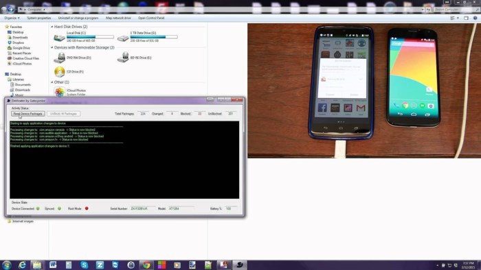 Lưu ý, đối với các thiết bị chưa root, bạn có thể tải về phần mềm Debloater tại địa chỉ http://bit.ly/debloater-xda, tương thích Windows và Mac. Khi hoàn tất, bạn hãy kết nối smartphone vào máy tính, đồng thời truy cập vào Settings (cài đặt) > Developer options (tùy chọn nhà phát triển) và kích hoạt tùy chọn USB debugging (gỡ lỗi USB).