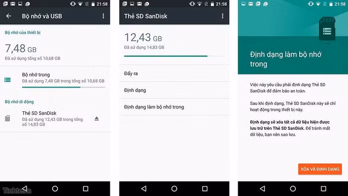 1. Sử dụng thẻ nhớ như bộ nhớ trong