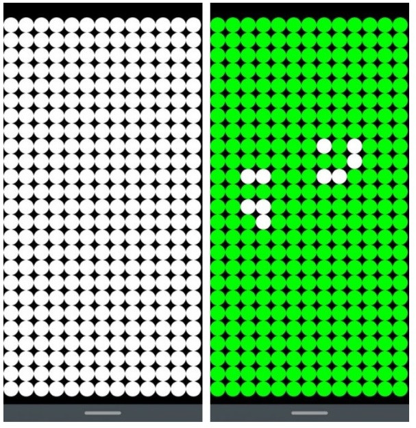 Sau khi kéo ngón tay trên toàn màn hình, bạn sẽ thấy một lưới, trong đó những chấm xanh sẽ thể hiện chức năng bình thường và chấm trống sẽ hiển thị vùng chết. Bạn có thể sử dụng lưới này như một bản đồ cho các vùng chết của điện thoại. Điều này khá hữu ích để bạn cân nhắc liệu có nên mang điện thoại đi sửa hay không.