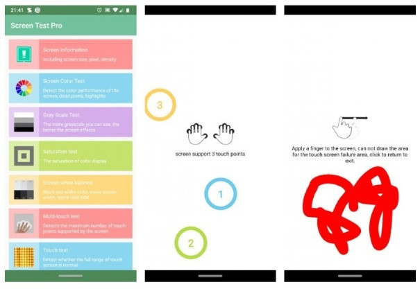 Screen Test Pro có cả hai trình kiểm tra cảm ứng được đề cập ở trên, bao gồm một tính năng vẽ đường thẳng và khả năng kiểm tra nhiều ngón tay.