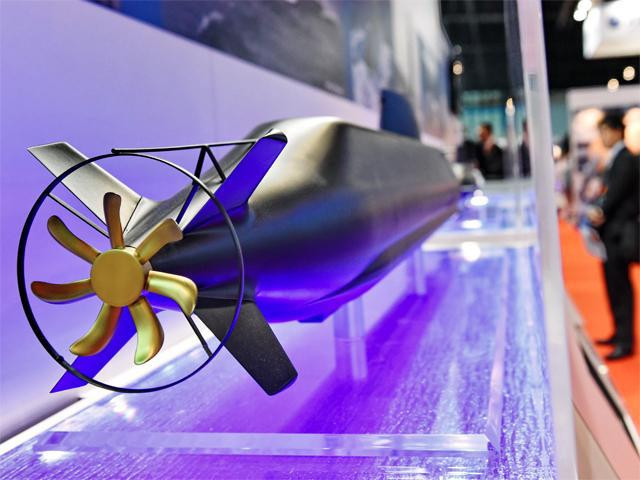 Một mô hình tàu ngầm HDW Lớp 216 của ThyssenKrupp Marine Systems tại triển lãm.