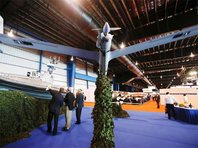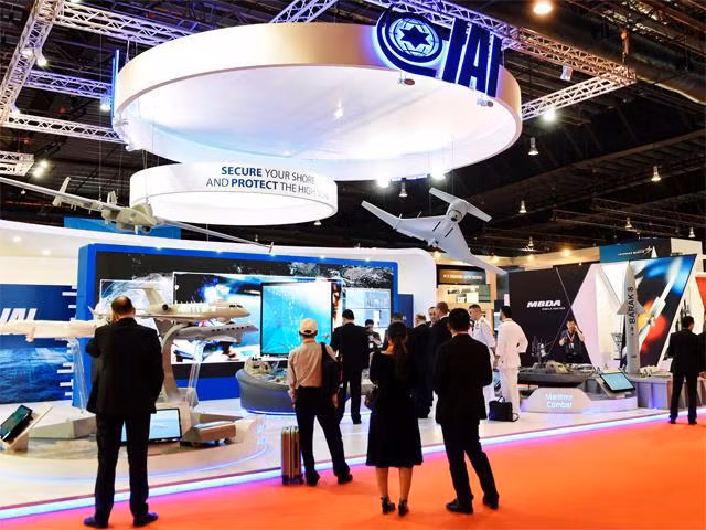 Gian của Israel Aerospace Industries (IAI), với nhiều khách tham quan qua lại tại triển lãm. Ảnh: Reuters