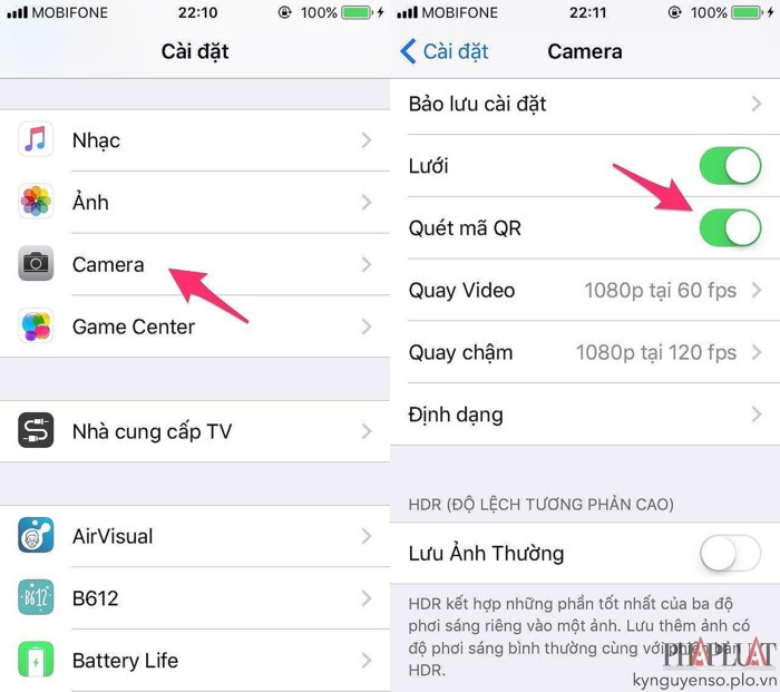 Hiện nay, QR Code được sử dụng ở khá nhiều nơi từ kinh doanh, quảng cáo, chia sẻ mật khẩu WiFi… hay kết nối đến một trang web. Để kích hoạt tính năng quét QR Code trên iOS 11, bạn hãy vào Settings (cài đặt) > Camera (máy ảnh) > Scan QR Code (quét mã QR). Kể từ lúc này, người dùng chỉ cần mở ứng dụng Camera trên iPhone là đã có thể quét QR Code nhanh hơn mà không cần phải cài đặt thêm các ứng dụng của bên thứ ba. Lưu ý, tính năng này chỉ hoạt động khi bạn sử dụng chế độ Photo và Square.