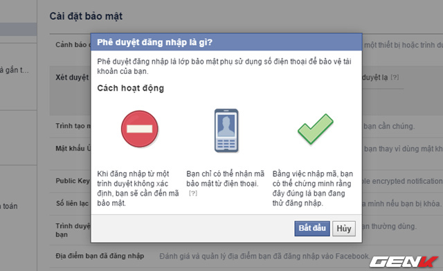 Bên dưới của tùy chọn cảnh báo đăng nhập (Login Alerts) là tùy chọn Xét duyệt đăng nhập (Login Approvals). Tính năng này khi được kích hoạt sẽ yêu cầu bạn nhập một mã xác thực mỗi khi bạn đăng nhập vào tài khoản Facebook của mình từ một trình duyệt khác hoặc chưa từng sử dụng trước đó.