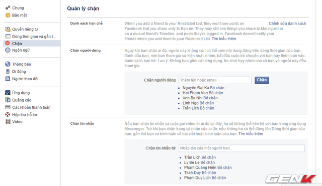 Tại đây bạn sẽ được cung cấp một số các lựa chọn chặn ứng dụng, lời mời, bạn bè mà mình cảm thấy khá mệt mỏi vì bị làm phiền.