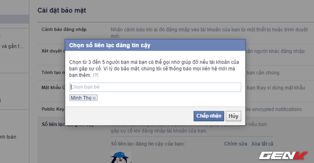 Tính năng này khi được kích hoạt sẽ giúp bạn khôi phục lại tài khoản thông qua xác nhận từ những người bạn mà bạn đã thiết lập tin cậy trước đó.