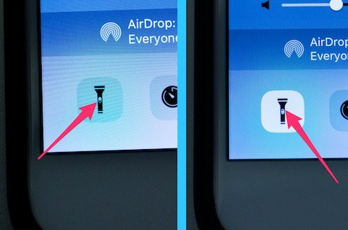 Nút bật/tắt trên biểu tượng đèn pin có sự thay đổi như một chiếc đèn pin ngoài thực tế tương ứng với chế độ đang mở hay tắt.