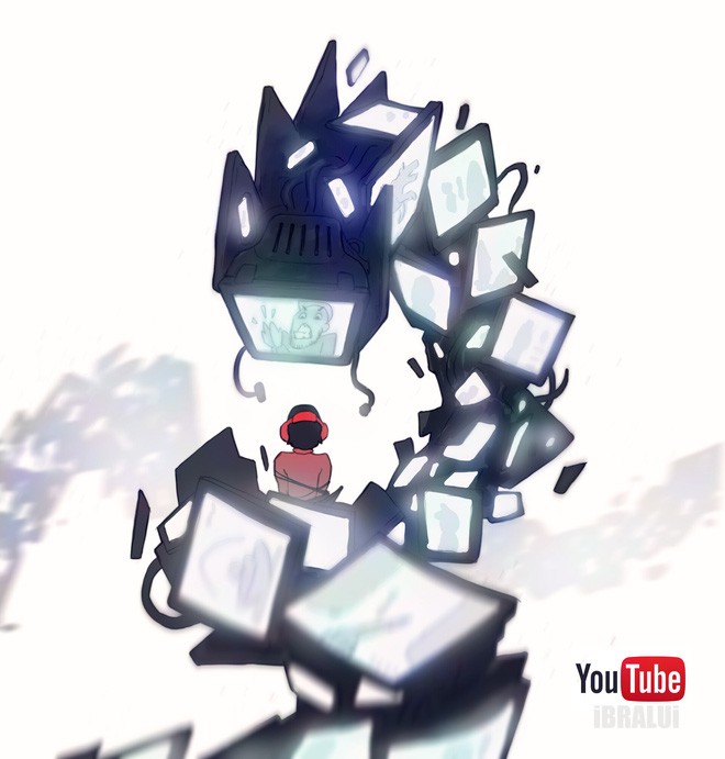 Chả trách tạo hình mà Brahim dành cho YouTube không khác gì một con rắn khổng lồ cấu tạo bởi đầy những màn hình video, cuốn chặt lấy bất cứ ai đang dạo chơi thơ thẩn trên Internet.