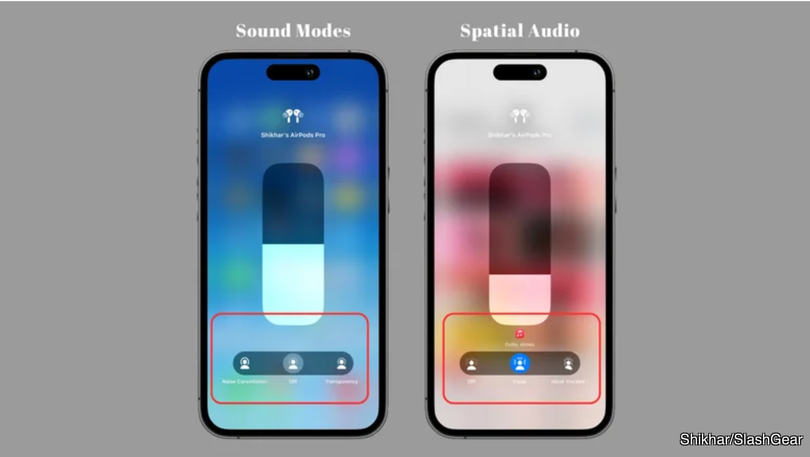 Để chuyển qua các chế độ âm thanh, hãy nhấn và giữ thân AirPods Pro cho đến khi bạn nghe thấy tiếng chuông. Ngoài ra, hãy mở Trung tâm điều khiển, chạm và giữ thanh trượt âm lượng, nhấn Kiểm soát tiếng ồn ở dưới cùng bên trái và chọn tùy chọn cần thiết.