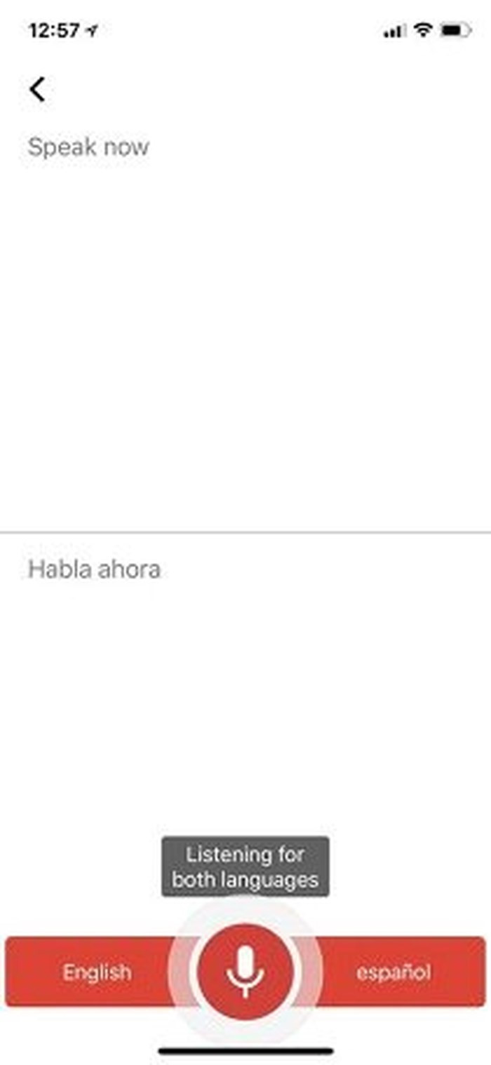 Sử dụng micro để phiên dịch khá nhanh chóng và dễ dàng, và bạn có thể dùng ứng dụng để dịch đoạn hội thoại giữa mình và một người nước ngoài. Khi bạn ở chế độ bật microphone, mặc định ứng dụng sẽ lắng nghe một ngôn ngữ và phiên dịch. Còn khi bạn nhấn vào nút microphone màu đỏ, ứng dụng sẽ lắng nghe cả hai ngôn ngữ và phiên dịch đồng thời để hai người có thể hiểu được nhau.