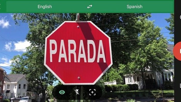 Khi bạn dùng camera của điện thoại để dịch bảng hiệu tên đường, một menu chọn món hoặc các biển báo bằng ngôn ngữ nước ngoài khác, Google Translate sẽ hiển thị phần dịch thuật ngay trên màn hình thiết bị. Bạn có thể chọn một phần đoạn văn để xem xét kỹ hơn. Để làm được việc này, chọn camera và điện thoại bắt đầu scan. Trong khi đó, bạn kéo và đánh dấu phần ngôn ngữ rồi chọn biểu tượng mũi tên xanh ngay bên cạnh đoạn vừa dịch.
