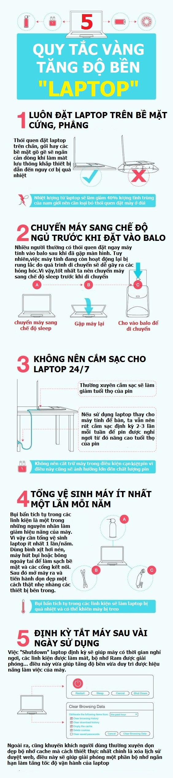 Việc laptop luôn được vận hành trong điều kiện tối ưu nhất sẽ giúp tăng một cách đáng kể hiệu năng cũng như độ bền của máy. Để làm được điều này, có những nguyên tắc “vàng” mà người sử dụng nên tuân theo!