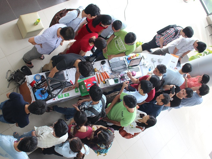 Đặc biệt, nhận được nhiều quan tâm nhất là các sản phẩm công nghệ được mang đến bởi các bạn trẻ nhóm Maker Hanoi.