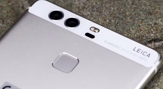 P9 được trang bị cụm camera kép 12 MP sử dụng công nghệ của hãng máy ảnh Đức Leica, trong đó 1 camera thường và 1 camera chụp ảnh đen trắng, có ống kính OIS, khẩu độ f/2.2, tiêu cự 27mm. Máy ảnh trước 8 MP. Camera thứ 2 sử dụng công nghệ của Leica không có bộ lọc màu, giúp tăng gấp đôi khả năng hấp thụ ánh sáng, ảnh có độ chi tiết, độ sâu và tương phản cao hơn rất nhiều. Để kích hoạt, người dùng chỉ cần chuyển sang chế độ chụp ảnh đen trắng.