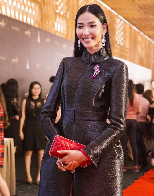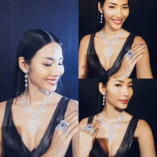 Tại một sự kiện diễn tại Hà Nội tháng 11, người đẹp thu hút mọi ánh nhìn với trang phục hàng hiệu trị giá tới 400 triệu đô la trong khi ngày 20.1 vừa qua, cô tiếp tục khoe khéo vẻ đẹp sang trọng và khả năng chi tiền “bạo tay” với bộ trang sức kim cương 2 tỷ đồng.