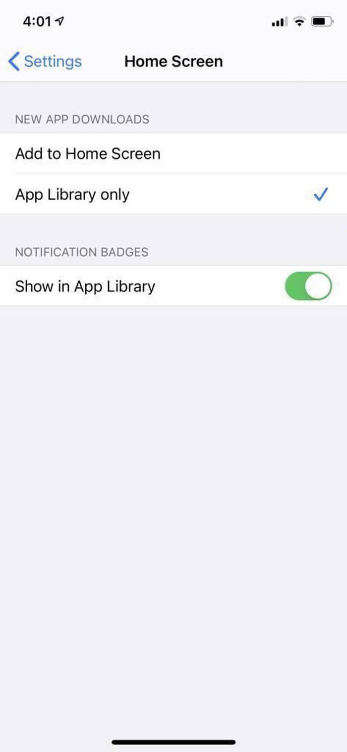 Để giấu các ứng dụng khỏi màn hình home, vào Settings (Cài đặt), truy cập vào Home Screen (màn hình Home) và chọn “App Library only”.